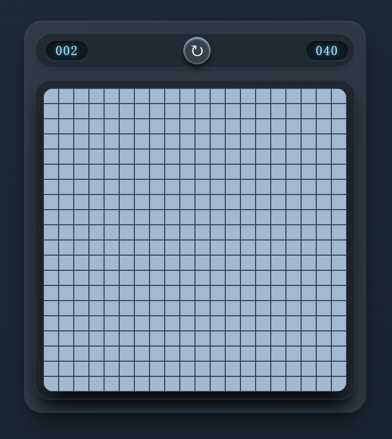 • 画布大小会根据窗口高度和所选难度自动调整:宽度由列数决定,高度在保证格子完整的前提下尽量适应屏幕,因此行数可能动态变化(并非固定网格)。